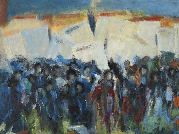 Emphasizing the contingency of color processes, a scene of Lang’s Odyssey shows a set assistant performing a color check on one of the painted statues playing the role of “the Greek statue” (fig. 14).69 Such color correction charts were an established feature of early color film technology, appearing as early as the beginning of the twentieth century.70 By the 1960s, color charts had also emerged as something of a leitmotif in the visual arts. In 1963, the year in which Godard released Contempt, David Smith painted one of the many polychrome sculptures so objected to by Greenberg, Zig VII, as a kind of color chart; Jim Dine painted The Color Chart; Alma Thomas sketched a preparatory drawing for her painting March on Washington, bringing together her engagement with the color chart and a figural depiction of the march—in which she had participated—to picture the mutual imbrication of seemingly objective color charts and constructions of race, colorism, and systemic, anti-Black racism (figs. 15–17).71 If the classical has long been associated with the figural and the color chart with abstraction, March on Washington pictures, instead, a relationship between abstraction and figuration. Similarly, paint on ancient Greek and Roman statues (and on their plaster casts) marks the entanglement of the color chart’s abstraction, color’s contingent materiality, and histories of figuration.