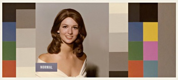 The color correction card held up against the face of a painted “Greek statue” in Lang’s Odyssey draws from the imagery of Kodak’s own Shirley cards, which were used to set the standard by which Kodak calibrated its color printing process for still photographs (fig. 18).82 Keyed to the skin of a white woman, the first of whom was ostensibly an employee of the company named Shirley, the cards modeled a white, femme body against which to measure a photograph’s colors, embedding racism in the technical production of color film. Building from this history in the color check scene, Godard substitutes a polychrome Greek statue for the Shirley, marking the enduring slippage between unpainted marble and whiteness and painting over this fiction.
