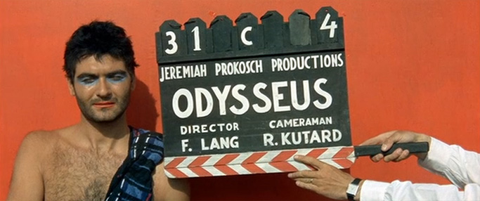 Ideas about translation tend to center the operations between two languages. While Contempt does thematize this mode of translation in the international world of commercial filmmaking, the film also incorporates translation between media and across space. Moravia’s novel, written in Italian prose, focuses on a screenwriter working on an adaptation of an ancient Greek epic poem. Godard’s multilingual project adapts Moravia’s text “as it is” (tel quel) into film, crafting an intermedial translation.11 The translation of the novel into film, a translation from one medium to another, shifts the relationship of the film within the film—Lang’s Odyssey—to the whole, a shift that Lang addresses directly in his verbal sparring with the American producer Jeremy Prokosch when he responds dryly to Jeremy’s critique that the script and the screen do not correspond by stating: “Naturally. Because in the script it is written, and on the screen it’s pictures.”12